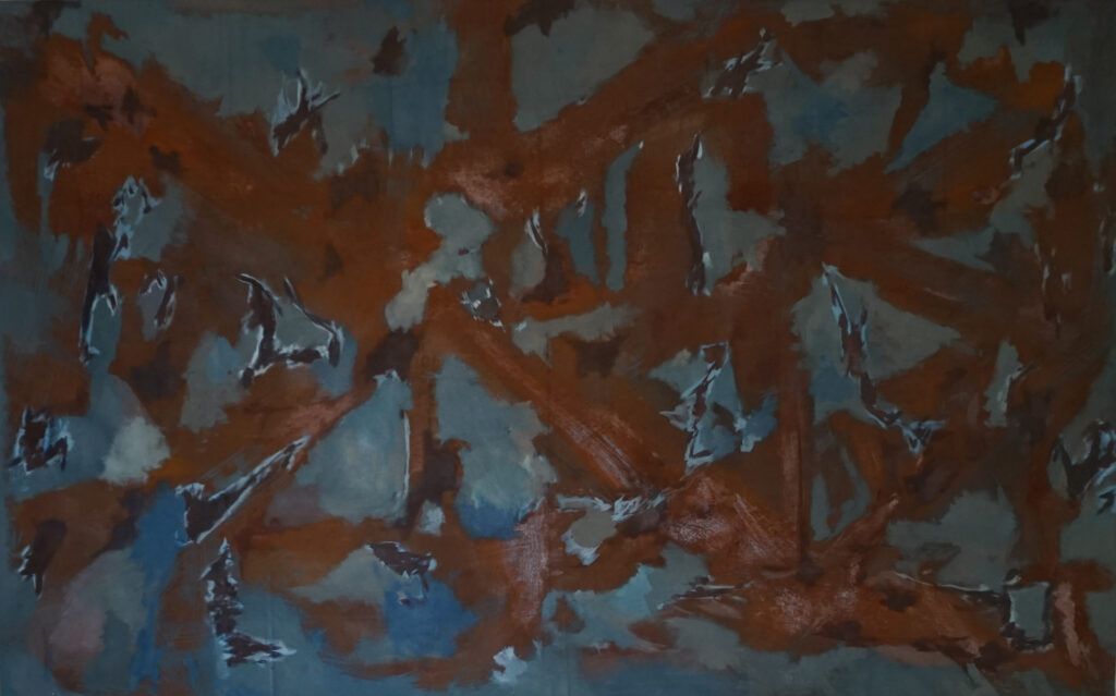 Acrylic and oxidizing solution on linen canvas.100 x 180cm